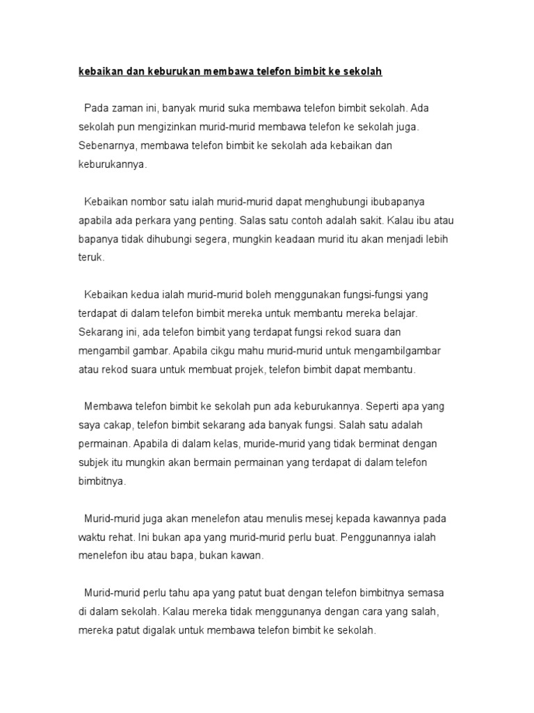 Kebaikan Dan Keburukan Membawa Telefon Bimbit Ke Sekolah Pdf